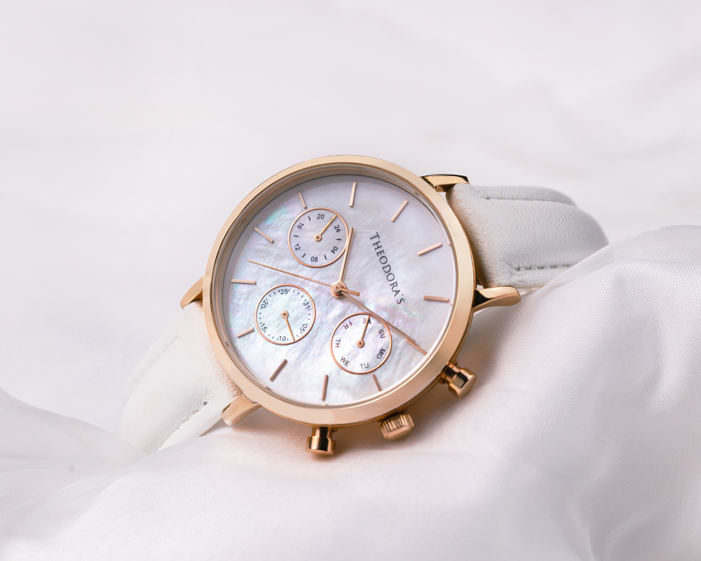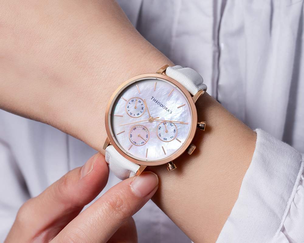 Orpheus 三眼母貝真皮腕錶[小錶面] 三眼母貝白-真皮白