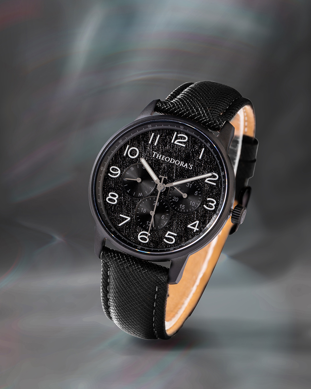 時間旅人 先行者 三眼夜光真皮腕錶 岩石黑-防刮真皮黑