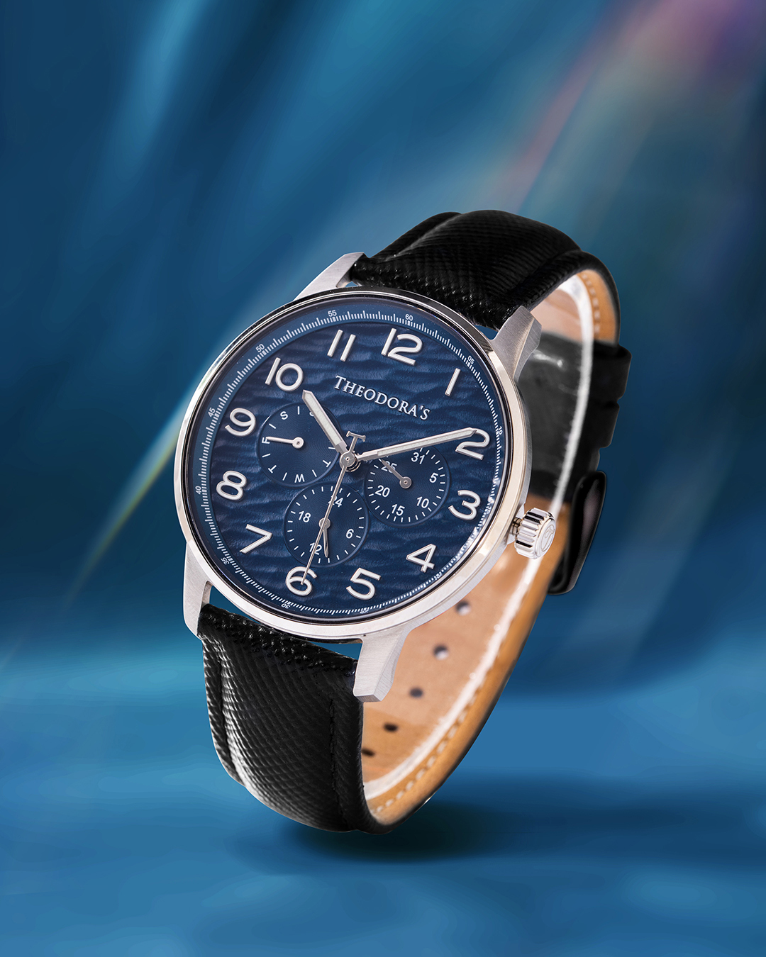 時間旅人 先行者 三眼夜光真皮腕錶 深海藍-防刮真皮黑