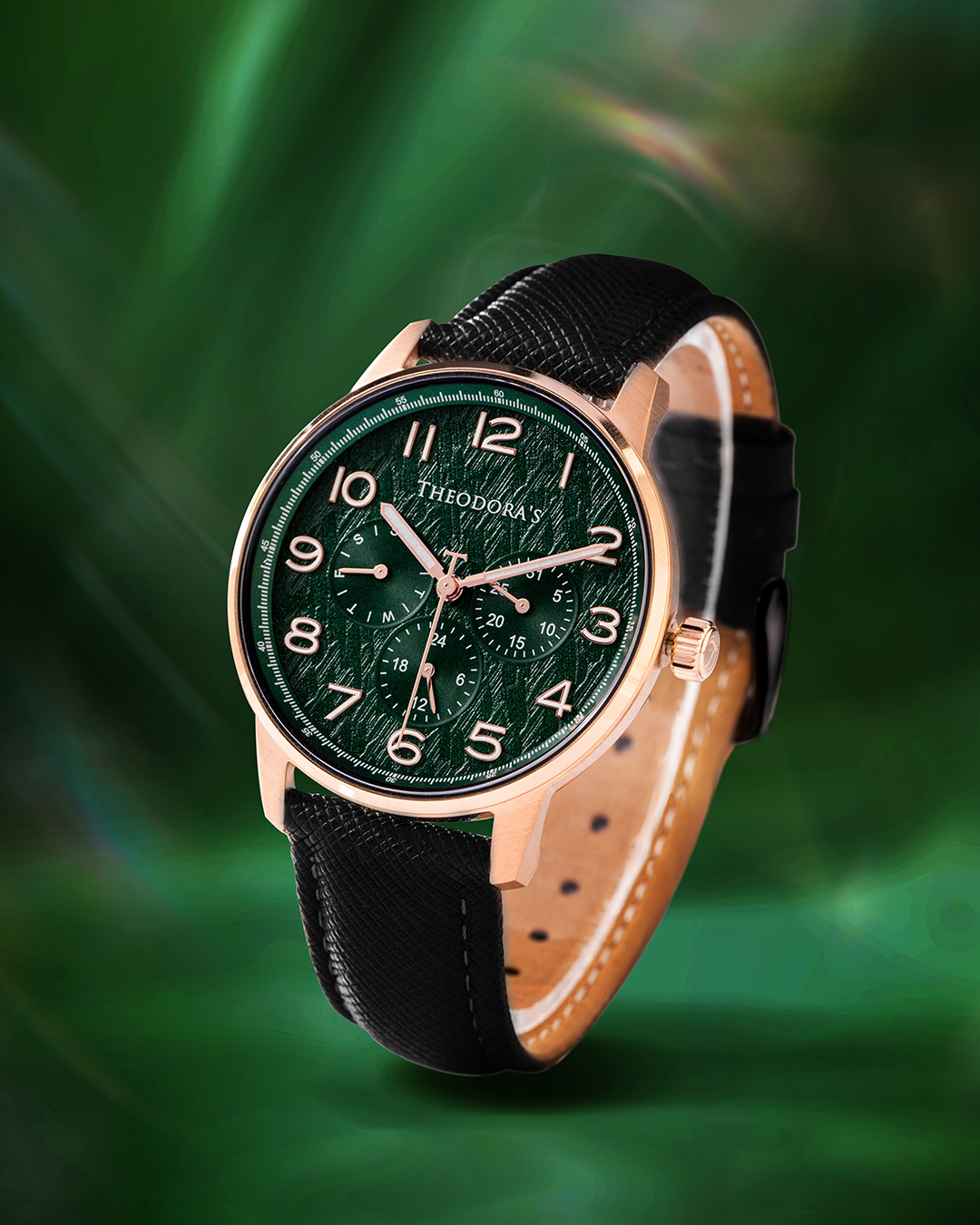 時間旅人 先行者 三眼夜光真皮腕錶 山景綠-防刮真皮黑