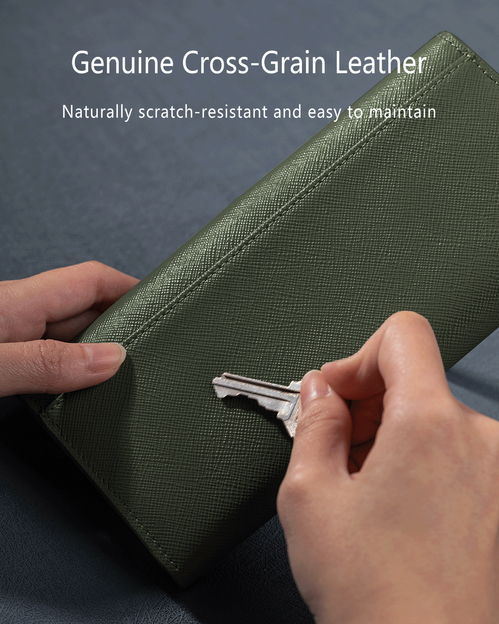 材質:十字紋頭層小牛皮