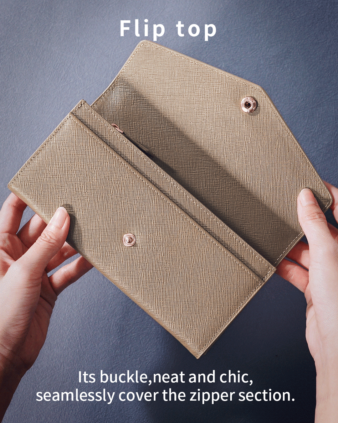 經典信封式長夾,拿在手上愜意優雅,搭配實用卡片與多個收納隔層,