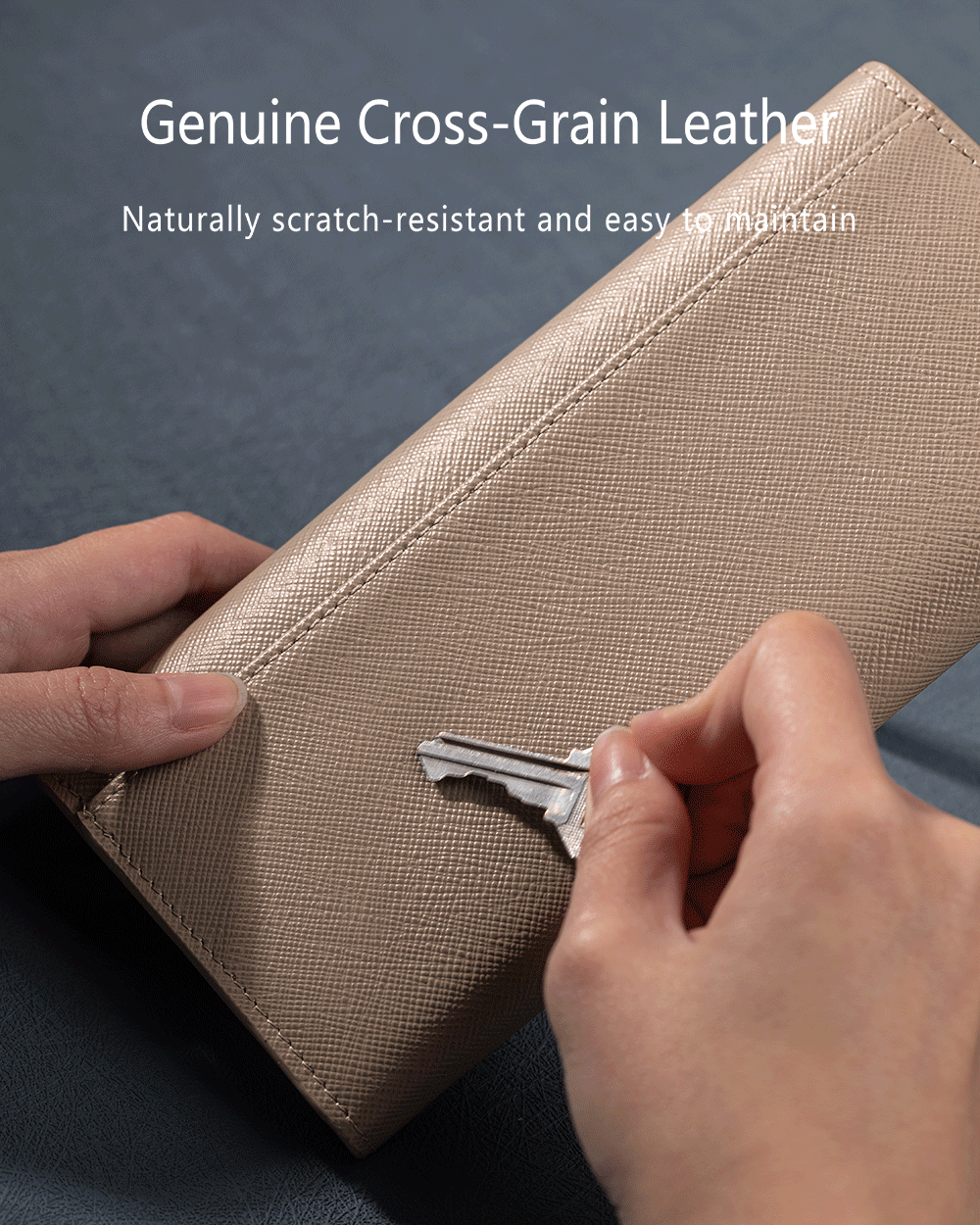 材質:十字紋頭層小牛皮