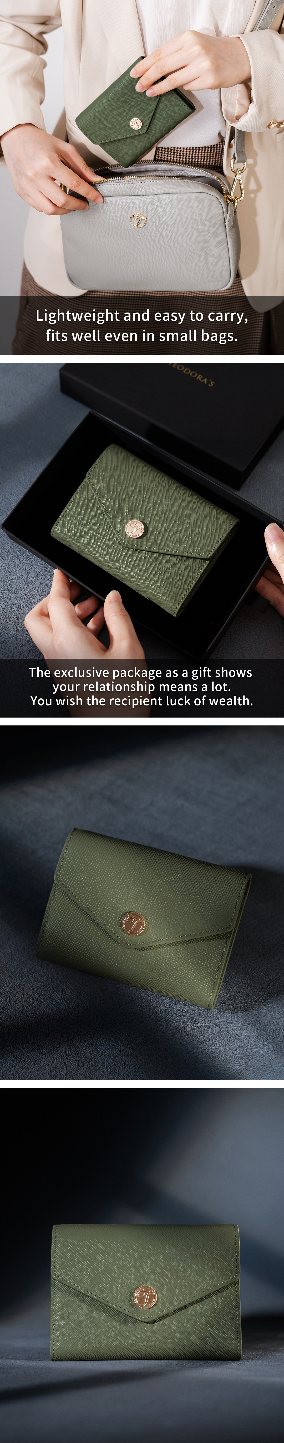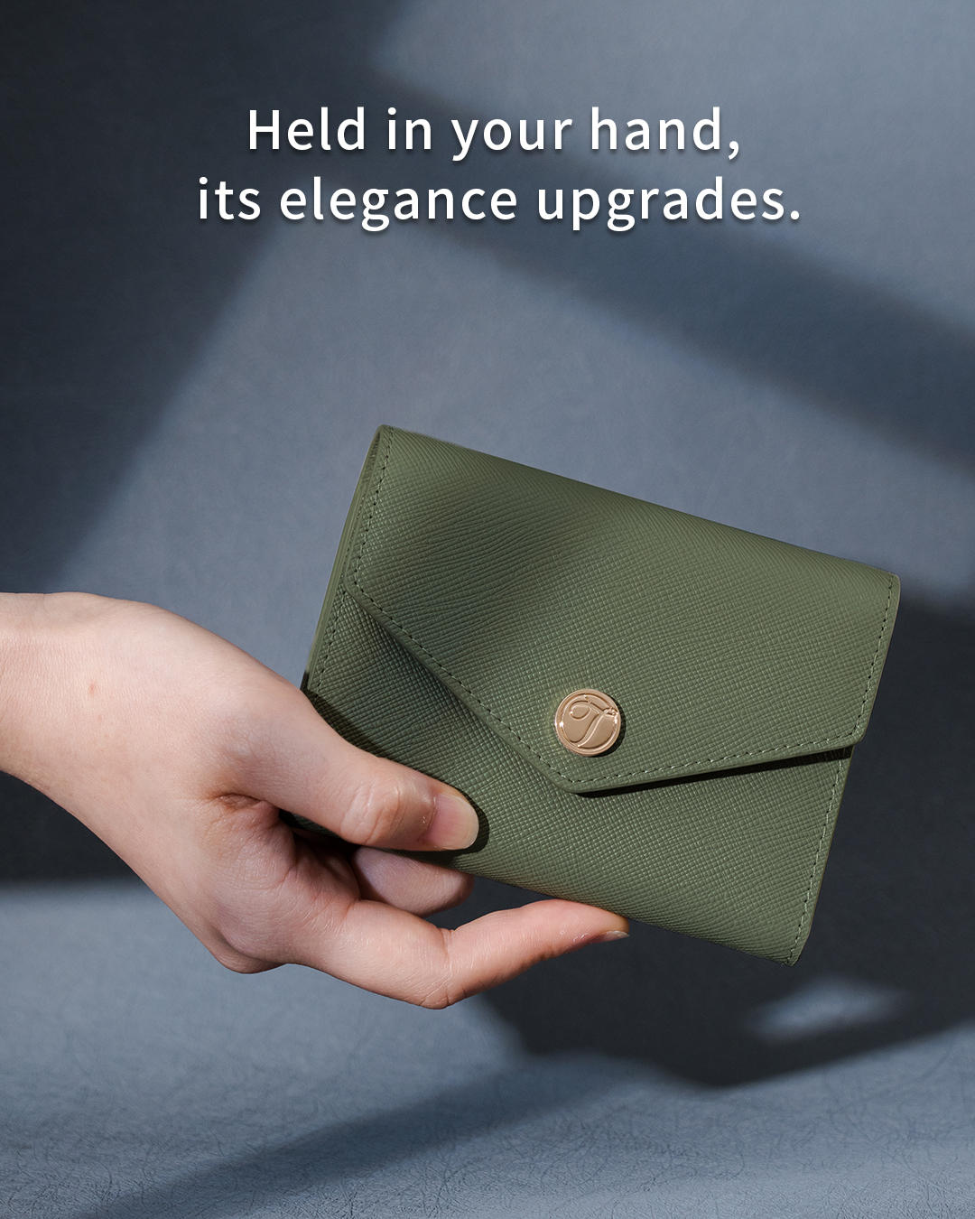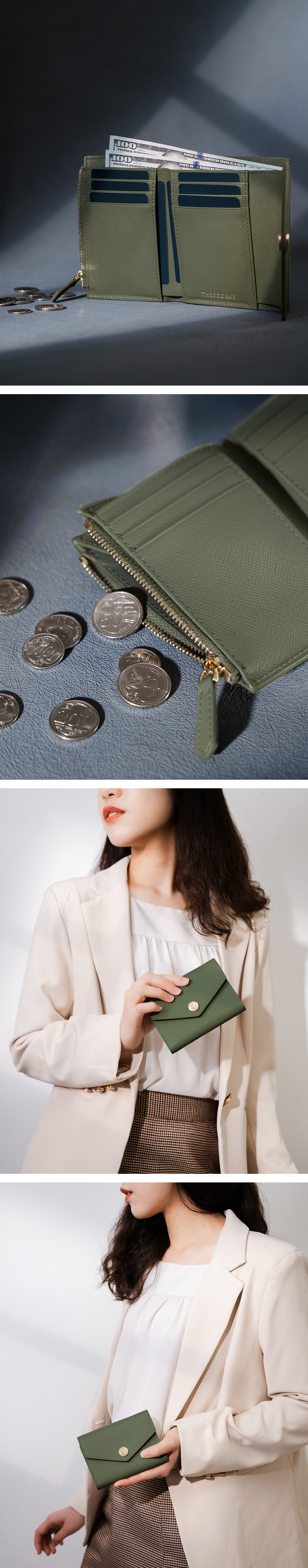 經典信封短夾,搭配實用多隔層,輕巧萬用!魅力獨具的綠色,