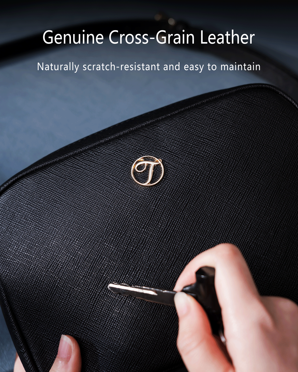 經典真皮皮革斜背包,雋永黑色,經典實用,