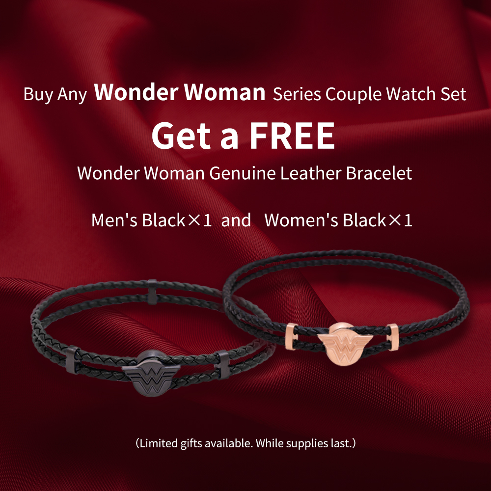 指定分類,買神力女超人對錶贈【神力女超人真皮手環2條】(男款黑+女款黑各1)