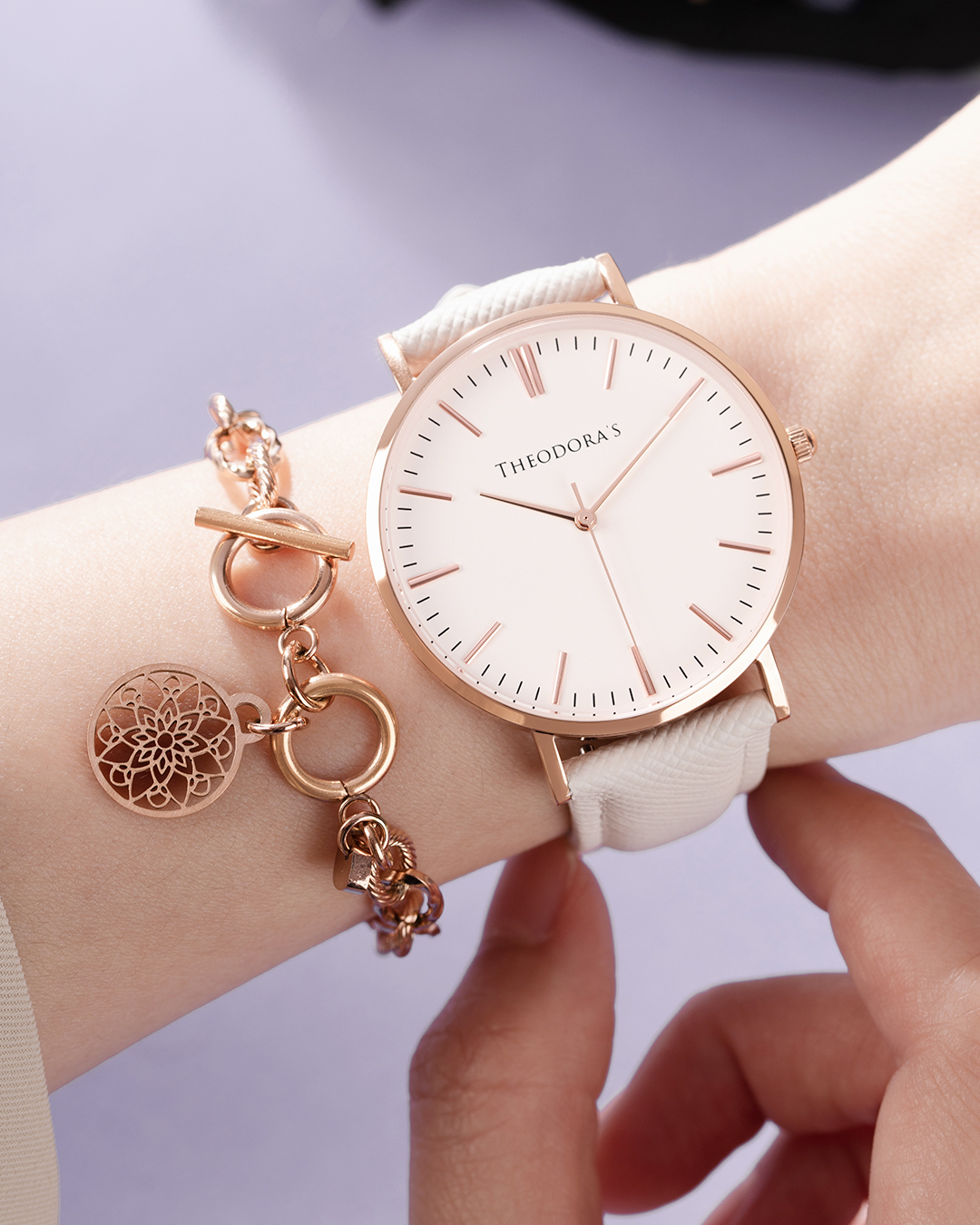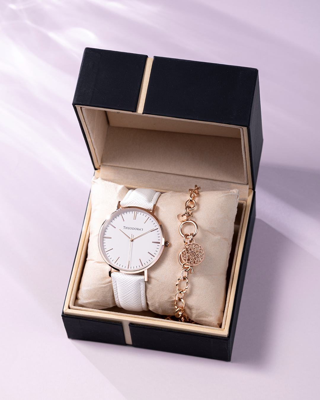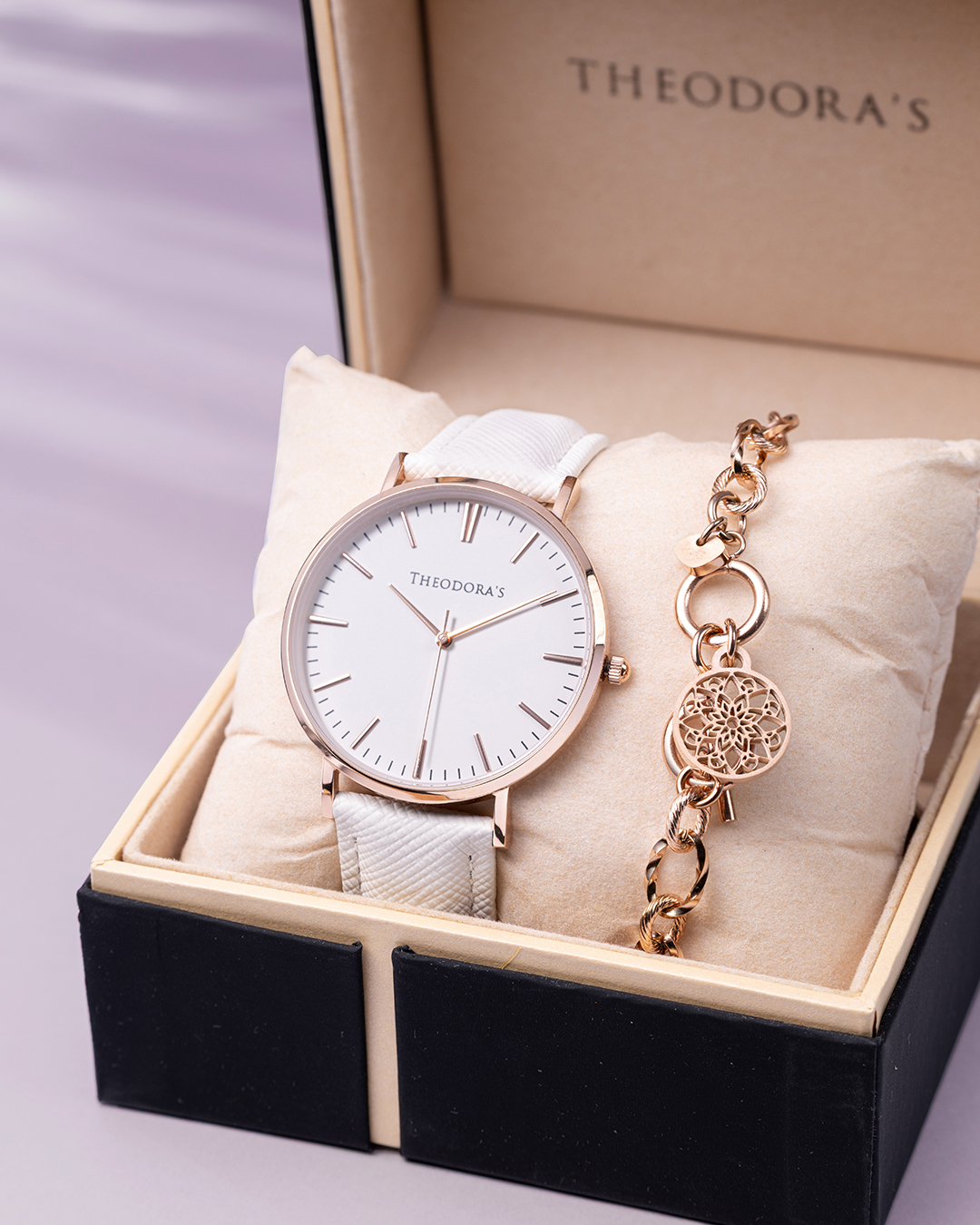 寵愛禮盒-女款 Hera 腕錶 蛋殼白面-防刮真皮白