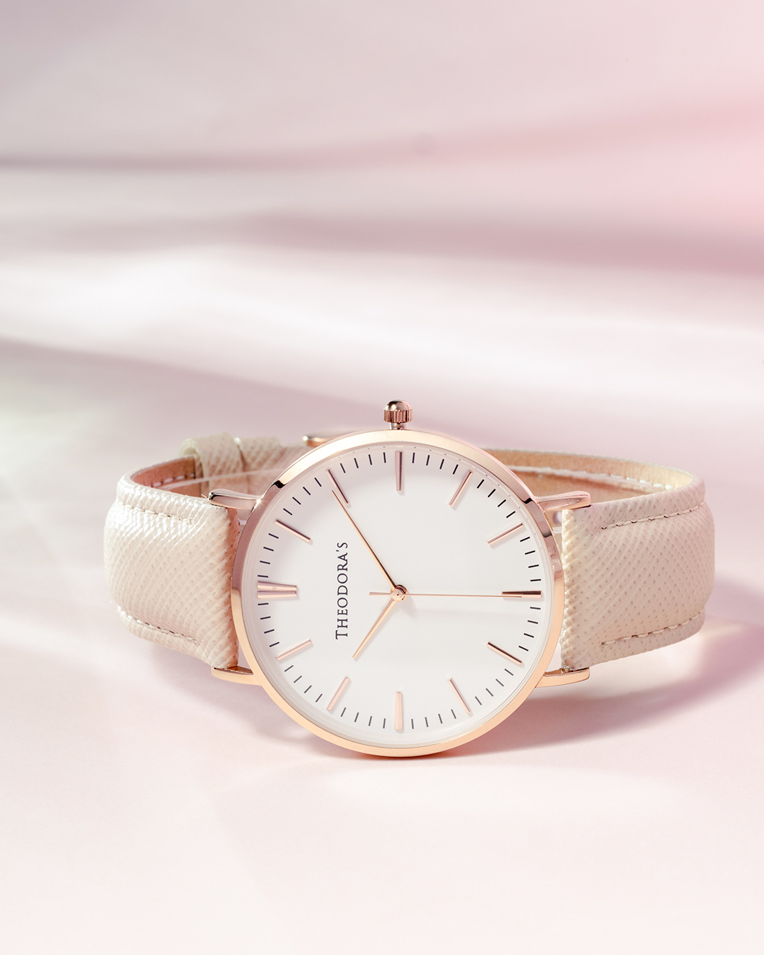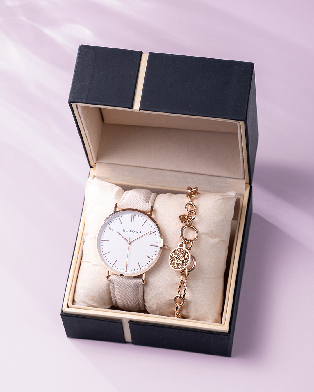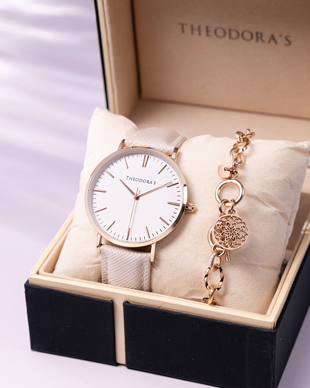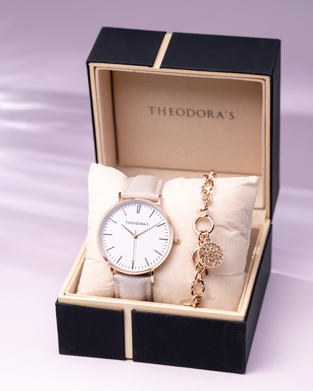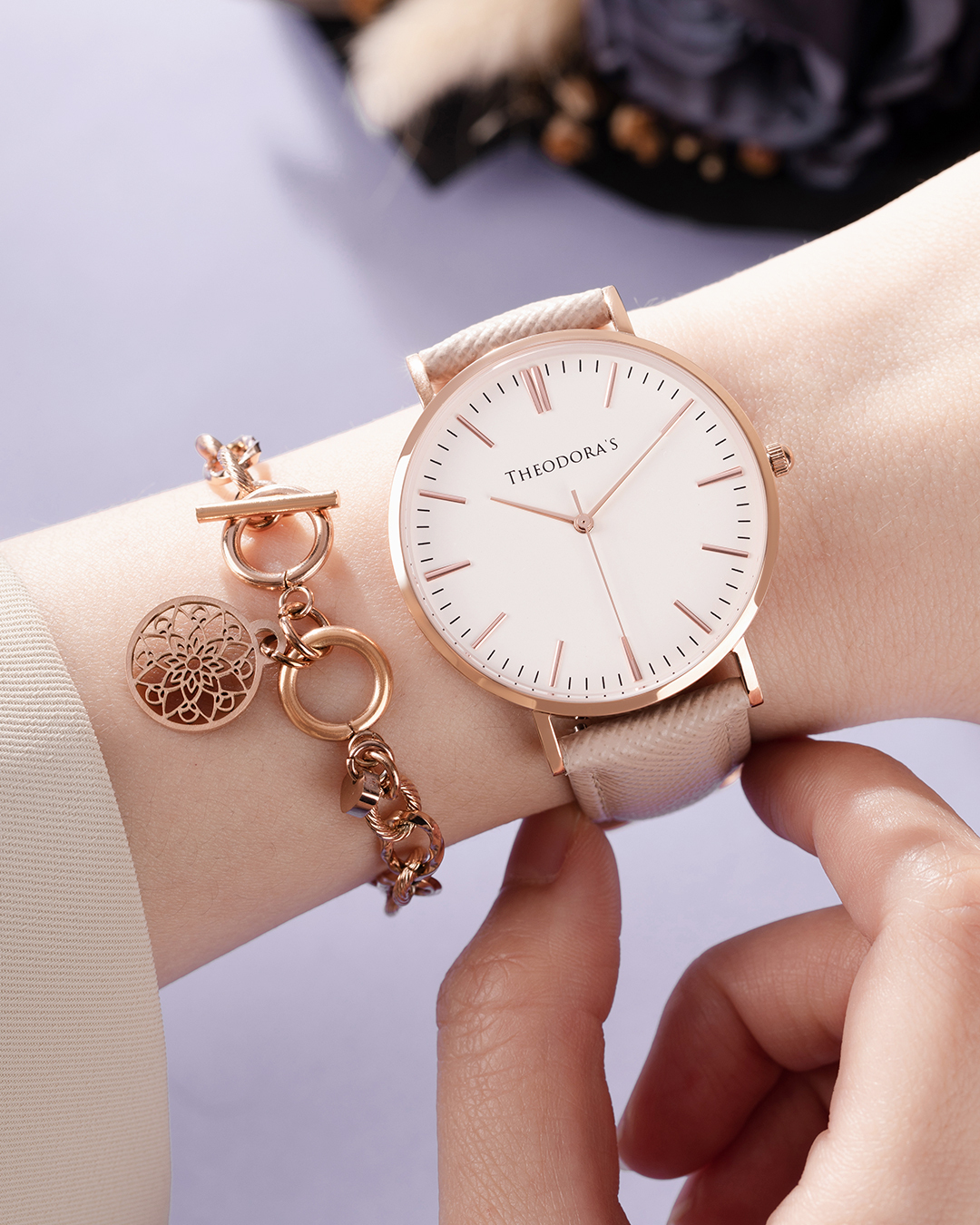 寵愛禮盒-女款 Hera 腕錶 蛋殼白面-防刮真皮奶茶