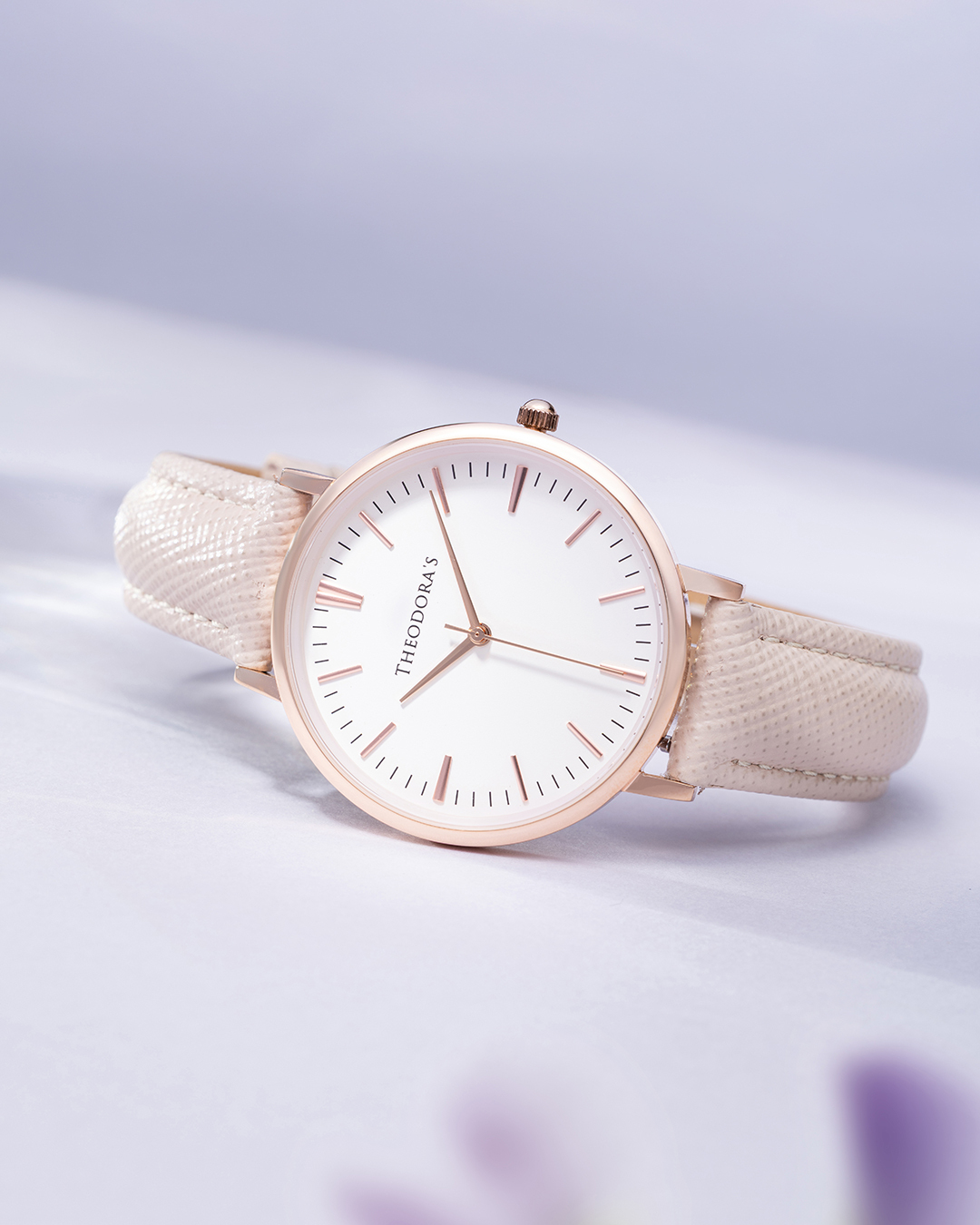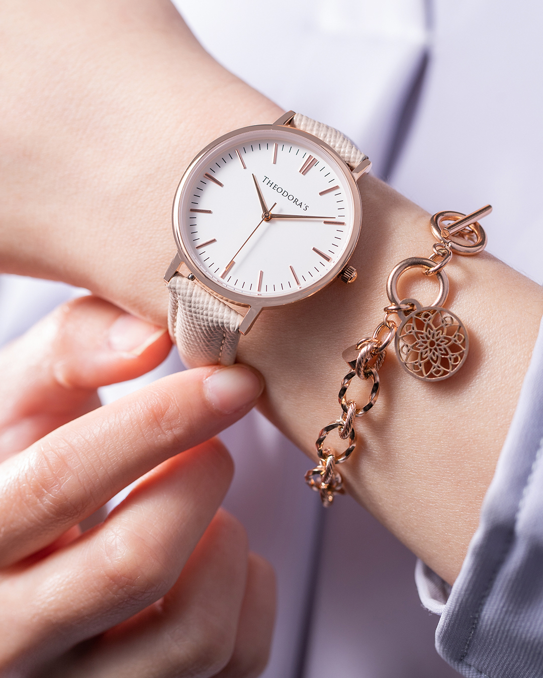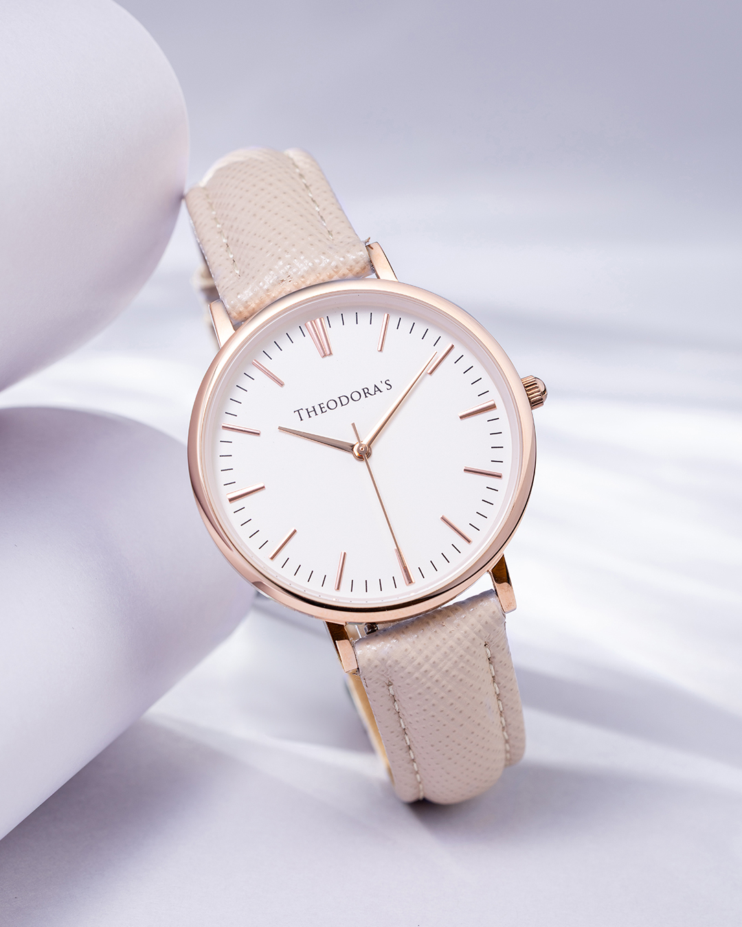 寵愛禮盒-女款 Hera[小錶面]腕錶 蛋殼白面-防刮真皮奶茶