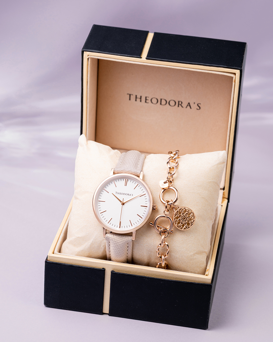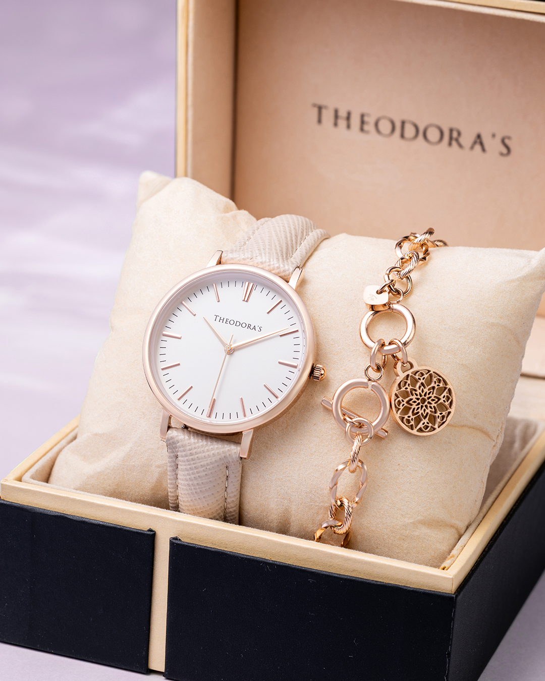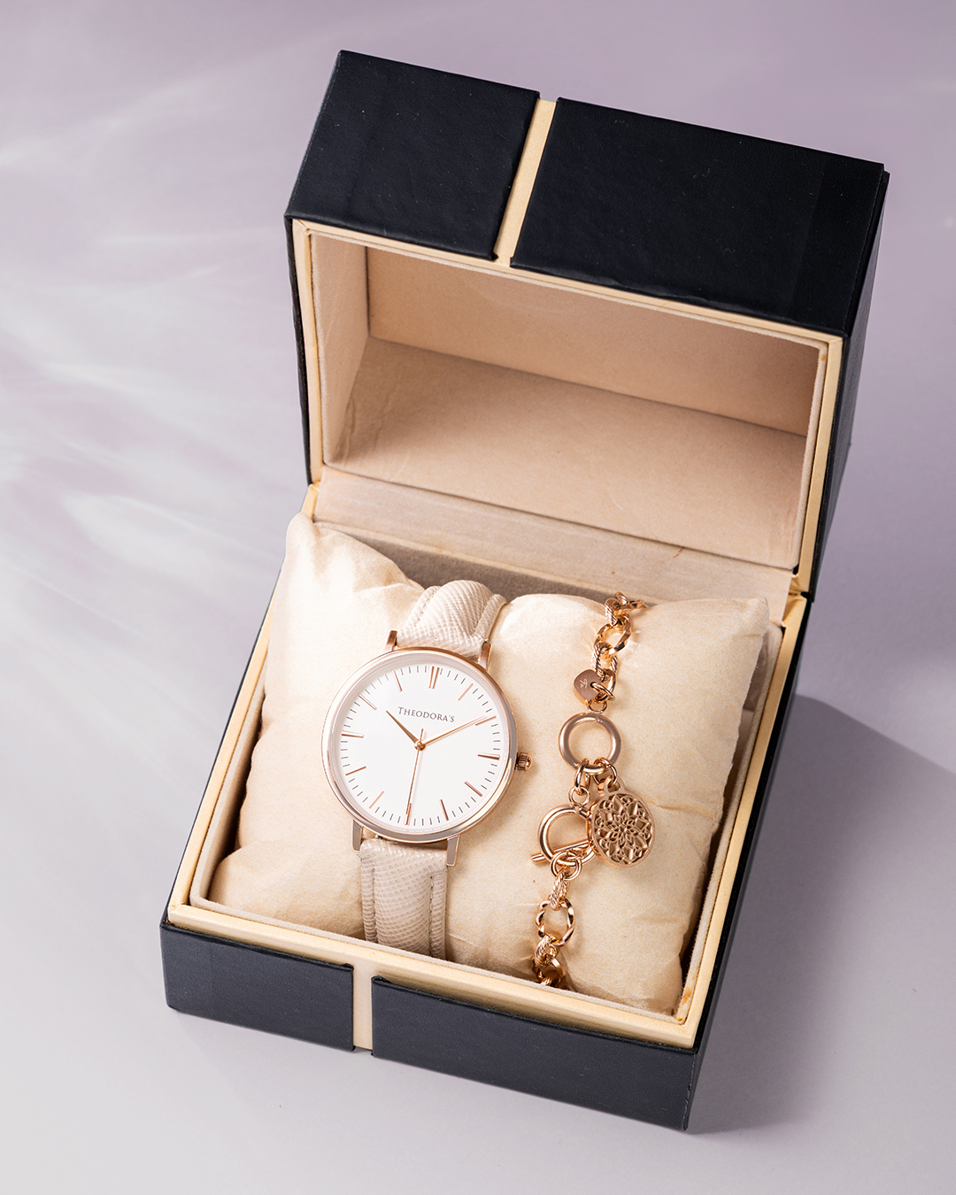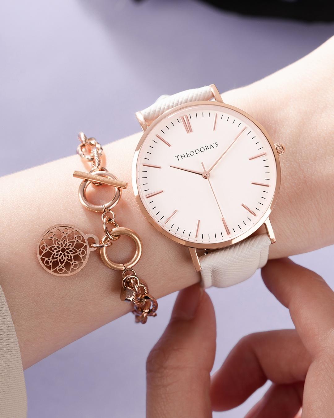 寵愛禮盒-女款 Hera[小錶面]腕錶 蛋殼白面-防刮真皮奶茶