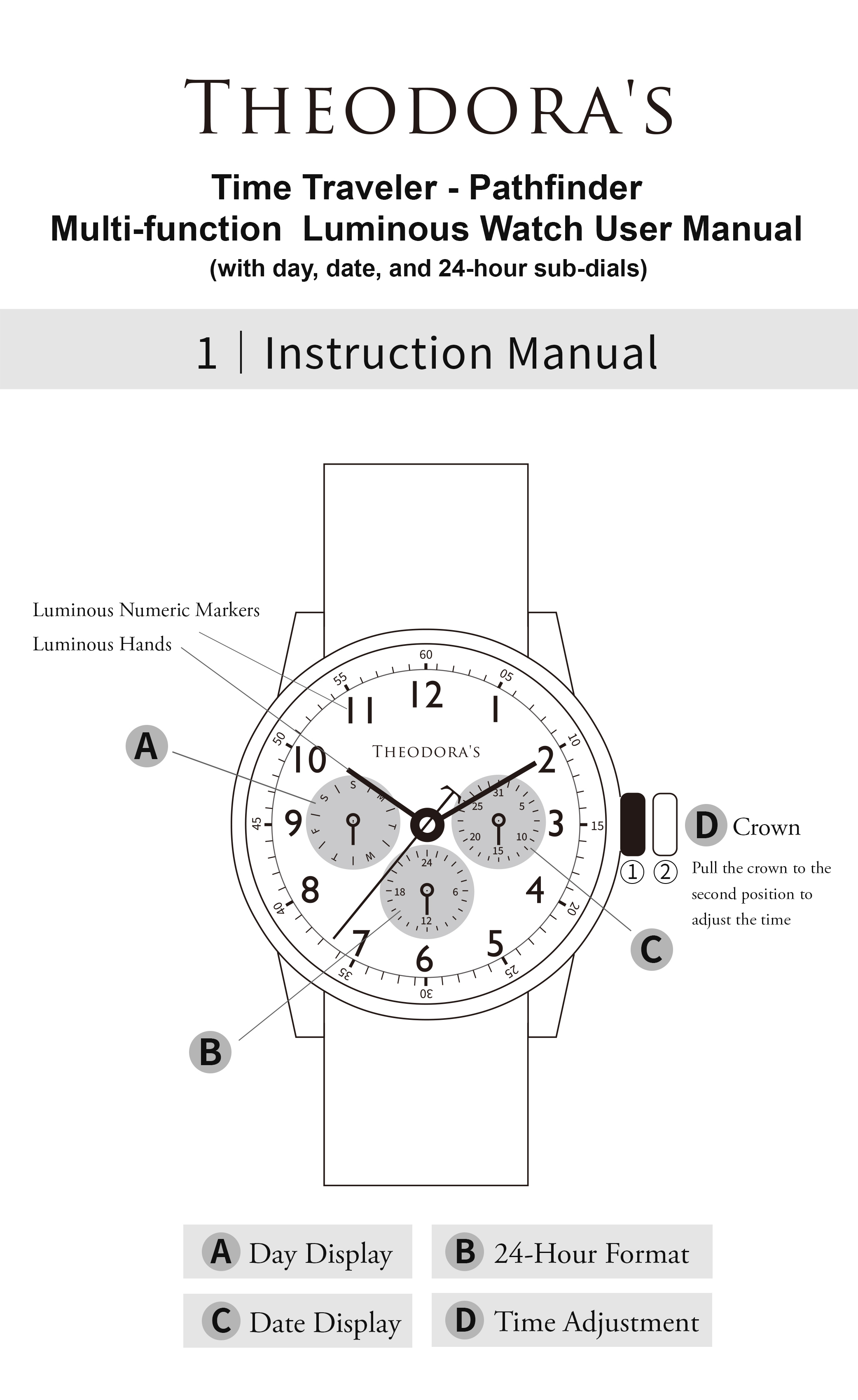 功能:夜光功能、日期顯示、星期顯示、24小時制